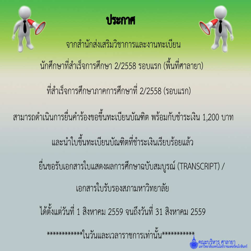 ประกาศโดย งานทะเบียน วันที่ประกาศ 26 พฤษภาคม 2559