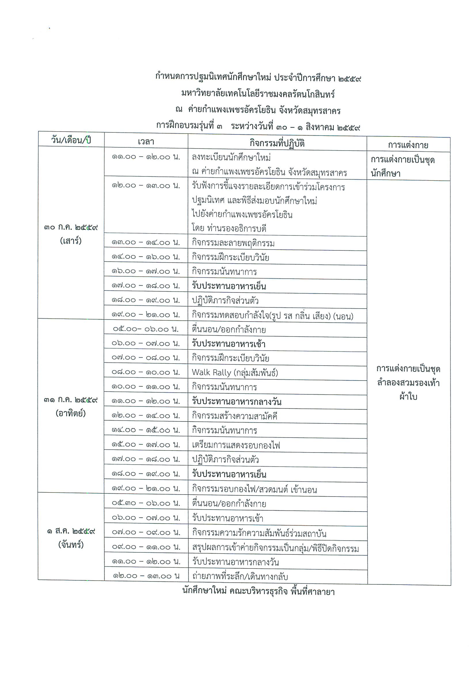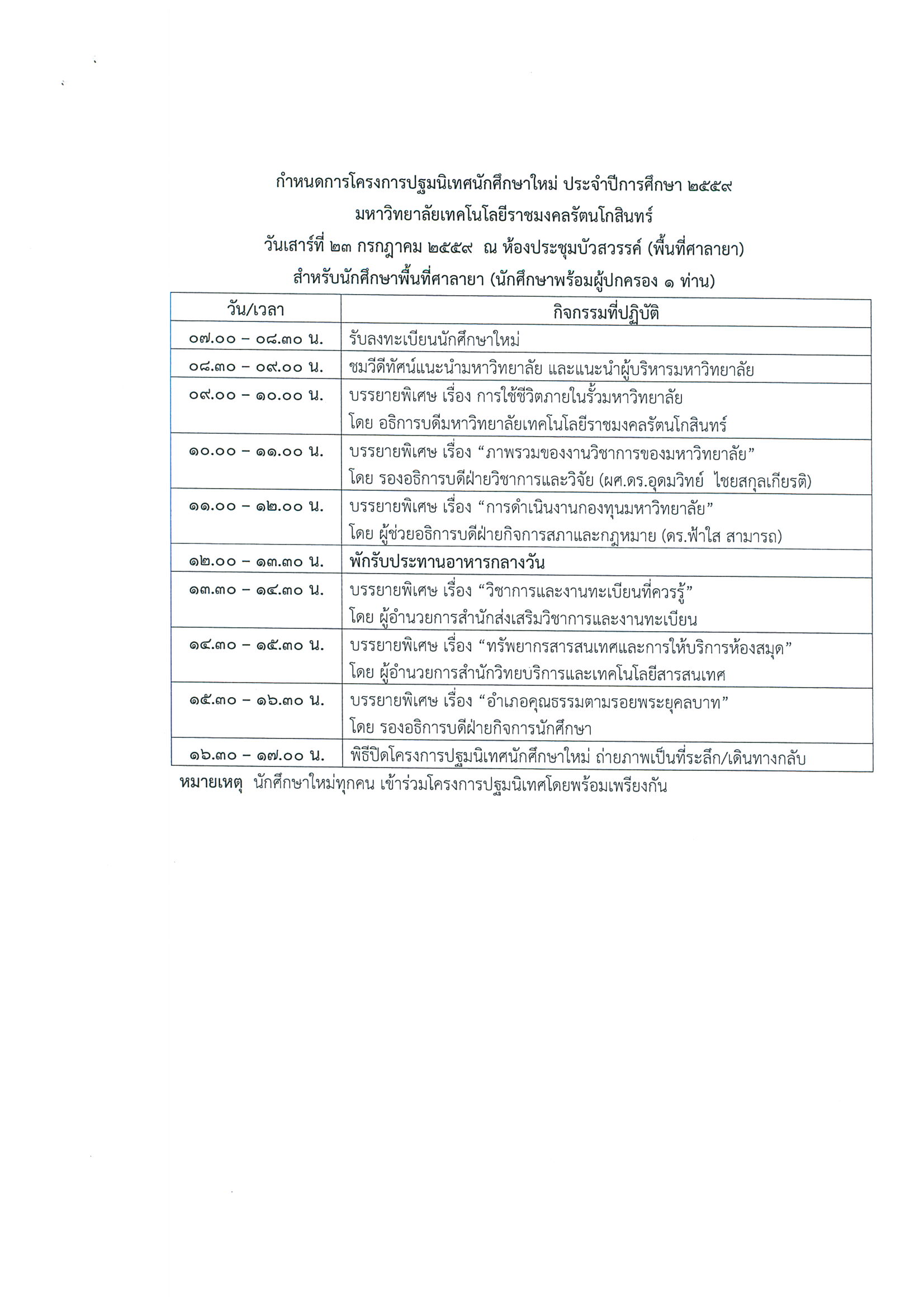 กำหนดการปฐมนิเทศ 59 คณะบริหารธุรกิจ พื้นที่ศาลายา