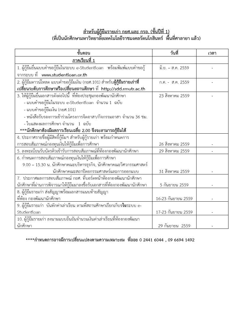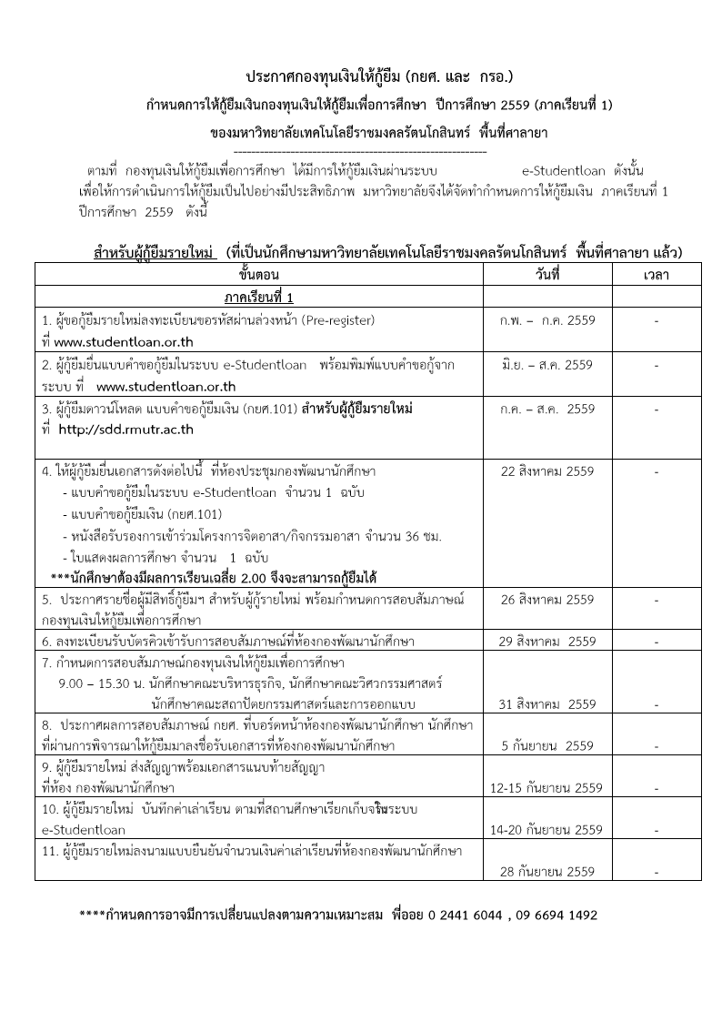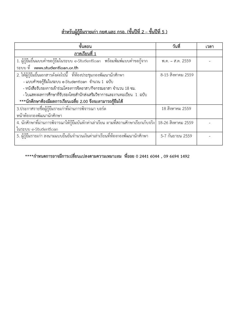 กำหนดการกองทุนเงินให้กู้ยืมเพื่อการศึกษา ปีการศึกษา 2559