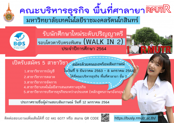 คณะบริหารธุรกิจ พื้นที่ศาลายา เปิดรับสมัครนักศึกษาใหม่ ประจำปีการศึกษา2564 รอบ (WALK IN 2)