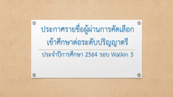 ประกาศรายชื่อผู้ผ่านการคัดเลือกประจำปีการศึกษา 2564 รอบ Walkin 3