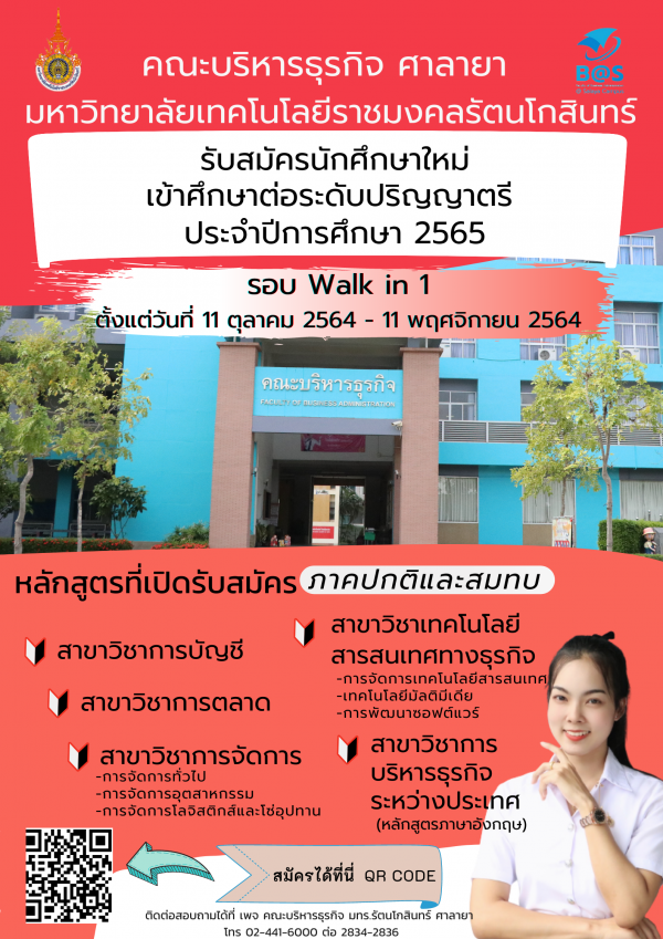 - คณะบริหารธุรกิจ ศาลายา เปิดรับสมัครนักศึกษาใหม่ เข้าศึกษาต่อระดับปริญญาตรี รอบ Walk In 4 ปีการศึกษา 2567 (สมัครออนไลน์เท่านั้น) เมษายน 9, 2024