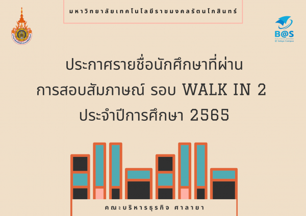 ประกาศรายชื่อผู้ผ่านการคัดเลือกเข้าศึกษาต่อระดับปริญญาตรี ประจำปีการศึกษา 2565 รอบ Walkin 2
